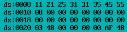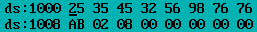 NUM DB 25H, 35H, 45H, 32H, 56H, 98H, 76H,76H ; eight 2-digit hex numbers input