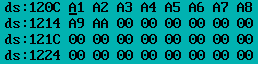 ARRAY2 DB 0A1H, 0A2H, 0A3H, 0A4H, 0A5H, 0A6H, 0A7H, 0A8H, 0A9H, 0AAH ; Inputs