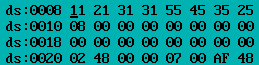 NUM DB 11H, 21H, 31H, 31H, 55H, 45H, 35H, 25H