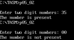 MSG3 DB 0DH, 0AH, ' The number is not present $' ; Message to present output